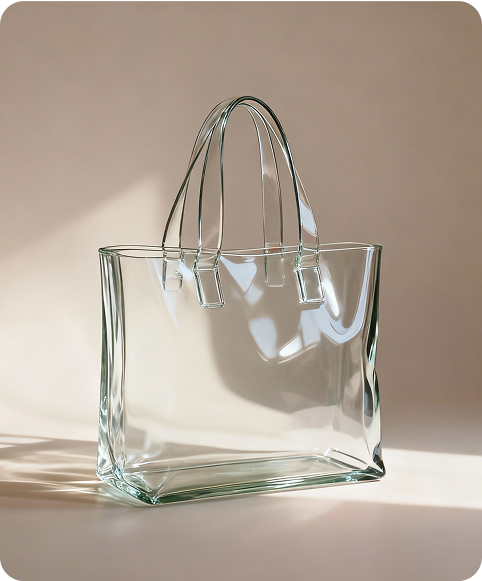 The same bag made of glossy transparent glass material