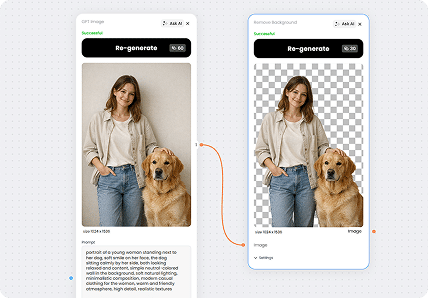 Unlike single-purpose AI tools, Phygital+ connects 30+ models (like Flux, Recraft, Runway, and GPT-Image) in one workspace. You can chain them into workflows — for example, generate product photo → upscale → add background → create banner — and save that pipeline to reuse anytime.