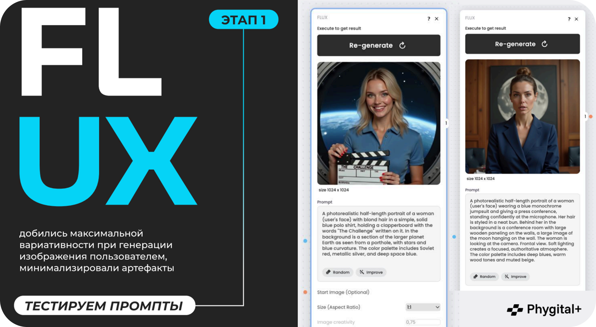 Креативная команда XPROMPT начала использовать Phygital+ для тестирования промптов, создания визуала для презентаций и социальных сетей, создания digital-маскота и генерации нейровидео — всё в одном пространстве.