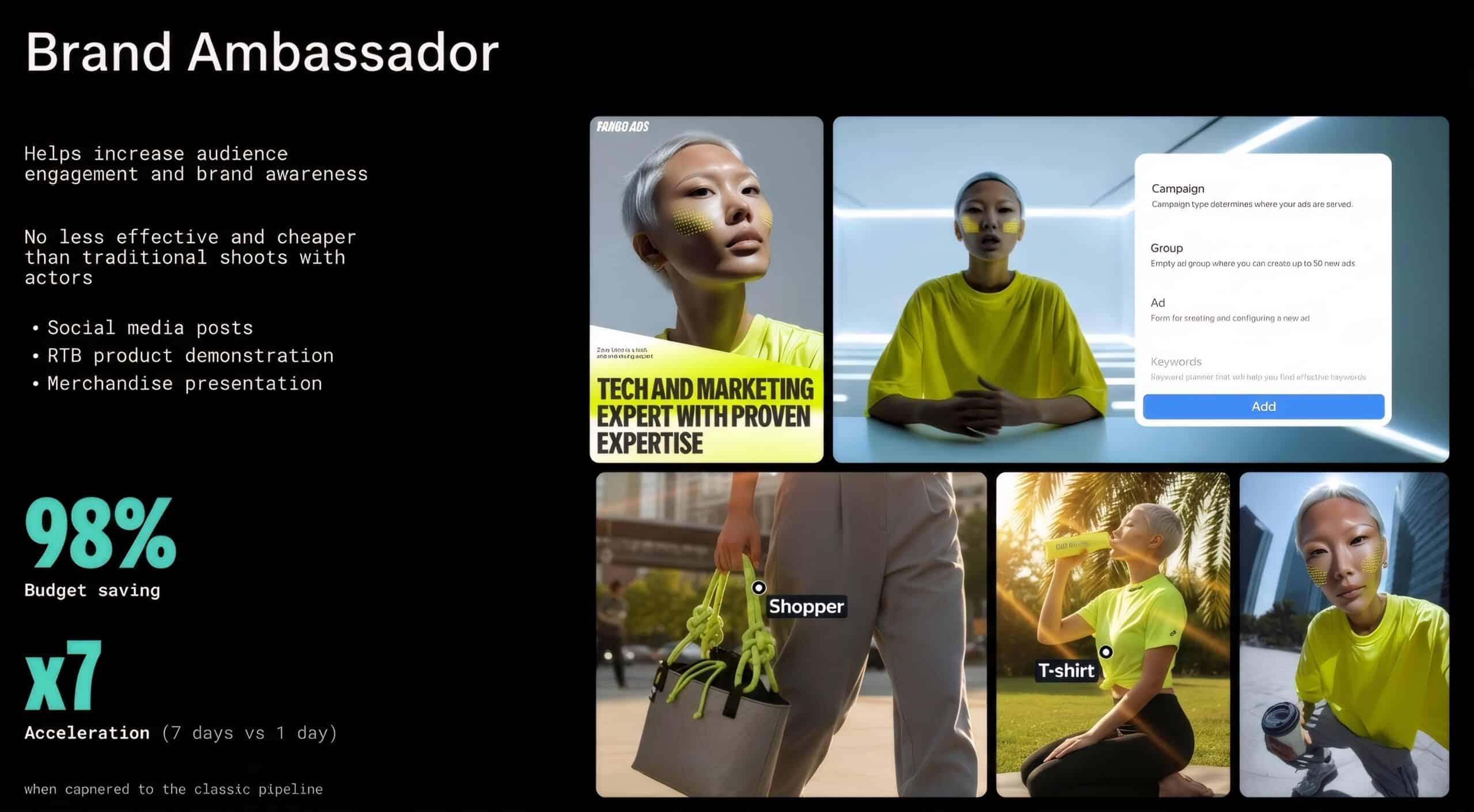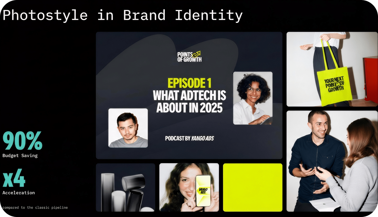 After implementing neural networks, the Yandex Ads’ communication design team was able to fully reorganize to apply AI to 100% of tasks on a daily basis, as well as implement a full AI production cycle and assemble identity and special projects built entirely on generative pipelines.